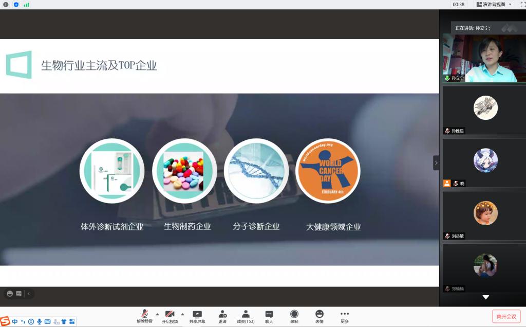2020年10月11日,球王会邀请浙江诺辉健康科技有限公司高级经理孙立宁通过网络对公司生物科学、生物技术员工进行《生物科学/生物技术专业就业前景》的专题公司产品报告。公司领导、专业老师和员工约300人听取了报告。